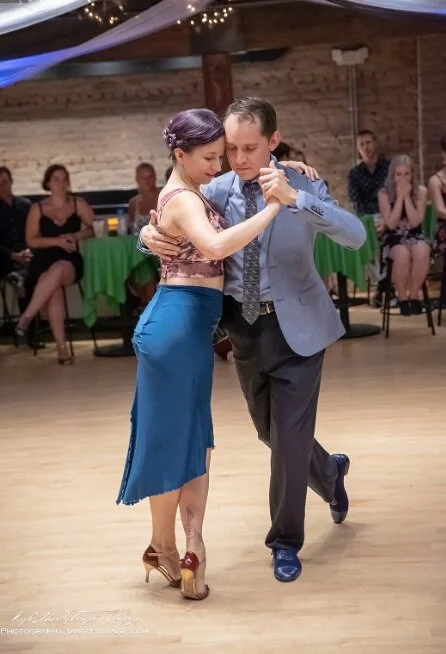 Jesica lives in Denver with her dance partner, John Miller. Together they wear many hats as instructors, organizers, DJs, therapists, videographers. They have been instrumental in building regional tango community — at Mountain Milonga (Utah), Salt Lake City Festival, Tree City Tango (Boise), and their very own festival, www.tangoontherocks.com which takes place in Denver during Labor Day weekend.